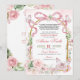 Pink Sage Coquette Bow Butterfly Quinceanera Invitation, Pink Floral Roses Sweet 16th Invite, Editable Mis Quince XV Años