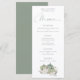Sage Pumpkins Cream Florals Wedding. Autumnal vibes with pumpkins and florals in soft greens and creams at the bottom with a coordinating colour sage on the back, with an elegant set script for Menu and easy to personalise the rest of the text to your requirements.