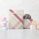 This custom plaid gift wrapping paper has a diagonally orientated plaid pattern with a springtime or summertime vibe in shades of raspberry, soft pink and sage and cream accents on a light taupe background - by katzdzynes
