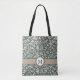 Sage Green and White Rustic Winter Botanical Leaves with Classic Monogram Tote Bag.