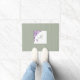 Cottage sage green stripe and floral secret garden pattern in purple with script font monogram, single initial doormat. Personalise with your own initial. Designed to match our Secret Garden Cottage Collection.