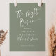 Sage Green Welcome Rehearsal Dinner Sign. Personalised Simple Minimalist The Night Before Sign. Just click the customise further link, shown under the text personalisation area on the right, and choose your custom colour background. This sign poster template makes it fast and easy to create stunning additions to your wedding decor. Signs can be enlarged, there are many sizes to choose from, as well as options for custom framing and matting.