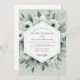 A serene and elegant design featuring delicate watercolor artwork. Soft white anemone blossoms with dark centers are nestled amongst muted sage green foliage. This gentle botanical arrangement evokes a feeling of quiet romance and natural beauty, perfect for a classic and understated union.