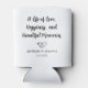 Celebrate your special day with this beautifully designed wedding can cooler featuring the heartfelt phrase "Cheers to Love, Laughter, and Happily Ever After." This customisable favour includes the couple’s names and wedding date, making it the perfect keepsake for guests. With a stylish script font and a soft pastel background, this drink sleeve adds a touch of elegance to any wedding, engagement party, or anniversary celebration. Keep drinks cold while creating lasting memories with this charming and functional wedding accessory.