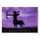 A silhouette image of a Sagittarian centaur against a purple-coloured celestial background graces this zodiac card – enhanced by a list of the wonderful qualities of the Sagittarius astrological sign: Idealistic, Humourous, Optimistic, Generous, Passionate. Add your own personal message inside – or leave blank if desired. Perfect for a birthday or all-occasion card.