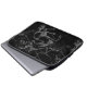 The sleeve is made of nice feeling material and seems very durable. I'm not sure how easy it'll be to clean, but the construction seems sound and the fabric is quick thick. I also like the double zipper. The printing is lovely and appears durable. The white on black contrast is nice, and the design very elegant.