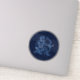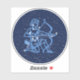 Sticker featuring the symbol for Sagittarius in soft silver blue, overlaid with the stars of the constellation, against a starry sky background graded from deep midnight blue to black