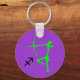 Cool, purple keychain with a delicate, green archer image inspired by an ancient rock art and a small Sagittarius astrological symbol - a stylised arrow. Product is fully customisable.