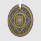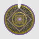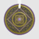 This Sagittarius themed mandala depicts an amethyst stone surrounded by the symbol for the sign, the constellation, and the alchemical symbol for Fire among filigree and weaves.