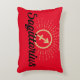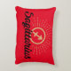 Astrology themed accent throw pillow features gold starburst accented Sagittarius zodiac symbol with black text on red background