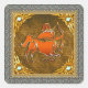This magnificent symbol is depicted with carved gold and embossed jewelled red lacquer against a leather background. The four suns rendered in gold represent the totality of the seasons. The centre of each sun features the embedded Sagittarius birthstone colour, turquoise