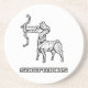 A coaster featuring a a geometric drawing of the Sagittarius zodiac sign.