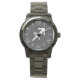 A silver chrome like Sagittarius zodiac sign on a black snake skin style texture print decor. A modern urban racy design for a great custom birthday fashion watch gift idea.