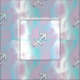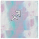 A mother of pearl Sagittarius zodiac sign on a vibrant pastel baby blue and pink decor print background. A modern design for a great custom birthday gift idea for her.