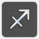 A silver chrome like Sagittarius zodiac sign on a black carbon fibre design texture print background. A modern urban racy design for a great custom birthday gift idea.
