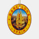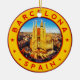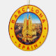 Badge of Barcelona skyline, Barcelona cityscape with flag of Spain colours and Basílica de la Sagrada Família, rounded shape.