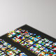View of the Sagrada Familia's stained glass windows in Barcelona. The Basilica is a large Roman Catholic church in Barcelona, Spain, designed by Catalan architect Antoni Gaudi.
