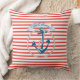 "Sail Away" Anchor, white Rope and red stripes Cushion