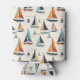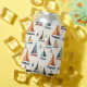 A sail boat sailing themed can cooler with a light background. Filled with sailboats and yachts. A fun coastal nautical themed pattern.