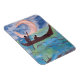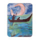 Join in the magic and mystery of sailing by moonlight with this gorgeous watercolor. Painted in soft pastel colors, the two intrepid travellers sail toward a calmer future against the background of the night sky and a huge crescent moon. The green, blue, brown and silver combine to create a warm and beautiful picture that will light up any room.