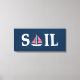 Sail text design illustration with sailing boat decoration on dark blue background. It is possible to change the background colour and to add different one to the design with your choice.