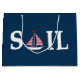 Sail text design illustration with sailing boat decoration on dark blue background. It is possible to change the background colour and to add different one to the design with your choice.
