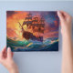 Experience the raw power and drama of the high seas with our captivating painting depicting a Sail Ship on a Stormy Sea. As the fiery hues of the sunset clash with the ominous clouds overhead, a lone sail ship valiantly battles the raging waters, its sails billowing against the relentless wind. Every brushstroke captures the intensity of the storm, from the towering waves crashing against the ship's hull to the tumultuous sky ablaze with hues of orange and red. Despite the chaos, there's a sense of resilience and bravery portrayed in this scene, reminding us of the indomitable spirit of seafarers facing nature's fury. Whether displayed in a nautical-themed room or as a striking centerpiece in your home, this painting is sure to evoke a sense of adventure and awe in all who behold it. (1001).