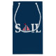 Sail text design illustration with sailing boat decoration on dark blue background. It is possible to change the background colour and to add different one to the design with your choice.