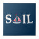 Sail text design illustration with sailing boat decoration on dark blue background. It is possible to change the background colour and to add different one to the design with your choice.