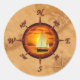 Vintage nautical Compass Rose with digital painting of a sailboat and sunset in the centre and vintage style nautical map of the Florida Keys background.