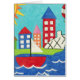 A cityscape serves as the background for a sailboat and a hot air balloon. A bright sun shines down on the scene, and a cute fish swims under the water. Purchase this peaceful print today!
