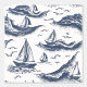 This is an elegant pattern design of sailboats crossing a wavy sea. It has a bluish colour scheme and perfect for study rooms.