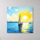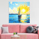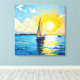 This has an illustration of a sailboat at sunset sailing on the peaceful water done in an impasto oil painting style with ai.
