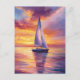 This painting captures a peaceful sailboat gliding across calm waters at sunset, with the sky glowing in warm hues of orange, pink, and gold. The serene composition evokes a sense of tranquillity and adventure, making it perfect for nautical and coastal decor.