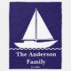 Sailboat Dark Blue and White Family Name Est. Year Fleece Blanket