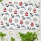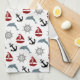 Sailboat Dolphin Anchor Pattern Navy and Red Tea Towel