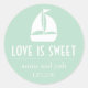 Sail Boat Love Is Sweet Labels (Light Pale Pastel Sage Green / Mint / White)...These fun nautical love is sweet thank you labels are the perfect addition to your thank you favours for your nautical destination wedding. Perfect for the bride and groom who are having their wedding reception on a boat or yacht. These fun and chic love is sweet labels / stickers are ideal for wedding favours or a wedding candy bar / buffet full of chocolate, suckers, lollipops, taffy, and sugar. Let your guests know to take a treat home with them to remember your wedding. The design features a fun sailboat. Great for any bride and groom who love to sail / sailing. Great idea for a bridal shower or bachelorette party too. Full customisable...just change the names and the dates and your favour stickers are ready to be used. Available in a wide range of colours to match your wedding colours. See WindyCityStationery.com for our complete line of "Sailboat" labels in a wide range of colours as well as matching "Sailboat" postage stamps, thank you cards, return address labels, save the dates and more.
