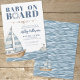 Baby On Board! Get your captain’s hats ready and set sail for a sweet nautical baby shower. This design features a blue and white sailboat floating in the middle of a calm ocean, complete with a friendly seagull perched on a rock, playful rope accents, and a classic blue life ring cleverly placed inside the word “Board.” The front sets the scene with its ocean charm, while the back includes a water pattern and a small sailboat detail for a coordinated finish.
