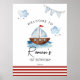 Nautical sailboat themed birthday party or baby shower welcome sign with a boat, clouds, water and birds.