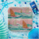Colourful sailboats, sailing on green ocean water among pink skies, a mixed media work of art.