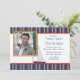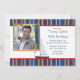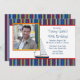 A nautical stripe of blue, red, white and yellow borders the top, bottom and back of this sumer-theme invitation. The white space for your sentiments is trimmed in red and hosts a sailboat and a photo window. A wonderful invitation for any age sailing enthusiast.