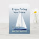 A graphic sailboat illustration with two sailors bailing out on a greeting card by artist/designer Charmaine Paulson. The customisable text says “Happy Sailing Your Name, and Bail Out-Bail Out!" The greeting card has text templates for your personalisation. ©2013charmainepaulson