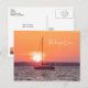 Thinking of you postcard - The sun pops up in centre of a sailboat mast along Santa Rosa Sound in Navarre Florida, United States. The sky fills with orange and coral colours as this is known as the gold magic hour or golden hour. Looking for more prints or products? Feel free to visit my store: http://www.zazzle.com/timelessmomentsphtgy This photo was taken by Jennifer White with Timeless Moments Photography. All images are copyrighted © Timeless Moments Photography.