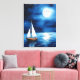 Canvas in an illustration of a sailboat drifting peacefully on a calm, moonlit sea, surrounded by a starry night sky. The full moon casts a gentle reflection on the water, creating a serene and tranquil scene.