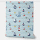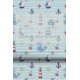 Dive into a delightful underwater adventure with this charming nautical pattern. Against a soft blue, wavy stripe background, adorable hand-drawn illustrations of smiling blue whales, cheerful sailboats, classic red and white lighthouses, anchors, starfish, and compasses create a fun, repeating design. This playful, gender-neutral pattern is perfect for adding a touch of coastal whimsy to a baby nursery, toddler bedroom, playroom, or bathroom. The simple, cheerful art style and soothing colors evoke the joy of the ocean and make it an ideal choice for creating a bright, breezy maritime space. Search ID1228 to see other products with this cute pattern. Note: design adapted from generative content.