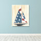 © Avery Tillmon / Wild Apple. Sailboat with American Flag on Wood background