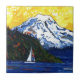 A sailboat in Puget Sound at sunset with Mount Rainier.