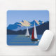 This captivating picturesque scene where sailboats gracefully glide across a serene body of water, their white sails billowing against the backdrop of majestic, snow-capped mountains. The juxtaposition of the tranquil lake and the towering peaks creates a breathtaking vista that evokes a sense of awe and adventure in the heart of nature.