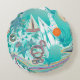 Sailboats and Sea Creatures Abstract Beachy Art Round Cushion