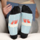 Hobby socks. Do you love sailing and life on the water? Then these socks are perfect for you! Light blue background, colorful sailboats glide by. Your favorite words in matching blue on a white ribbon around the foot. Socks for your hobby!